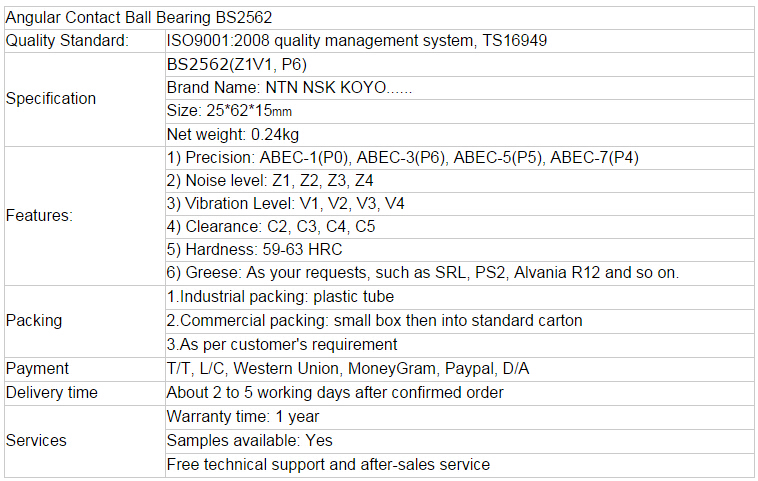 Production Description of Angular Contact Ball Bearing BS2562